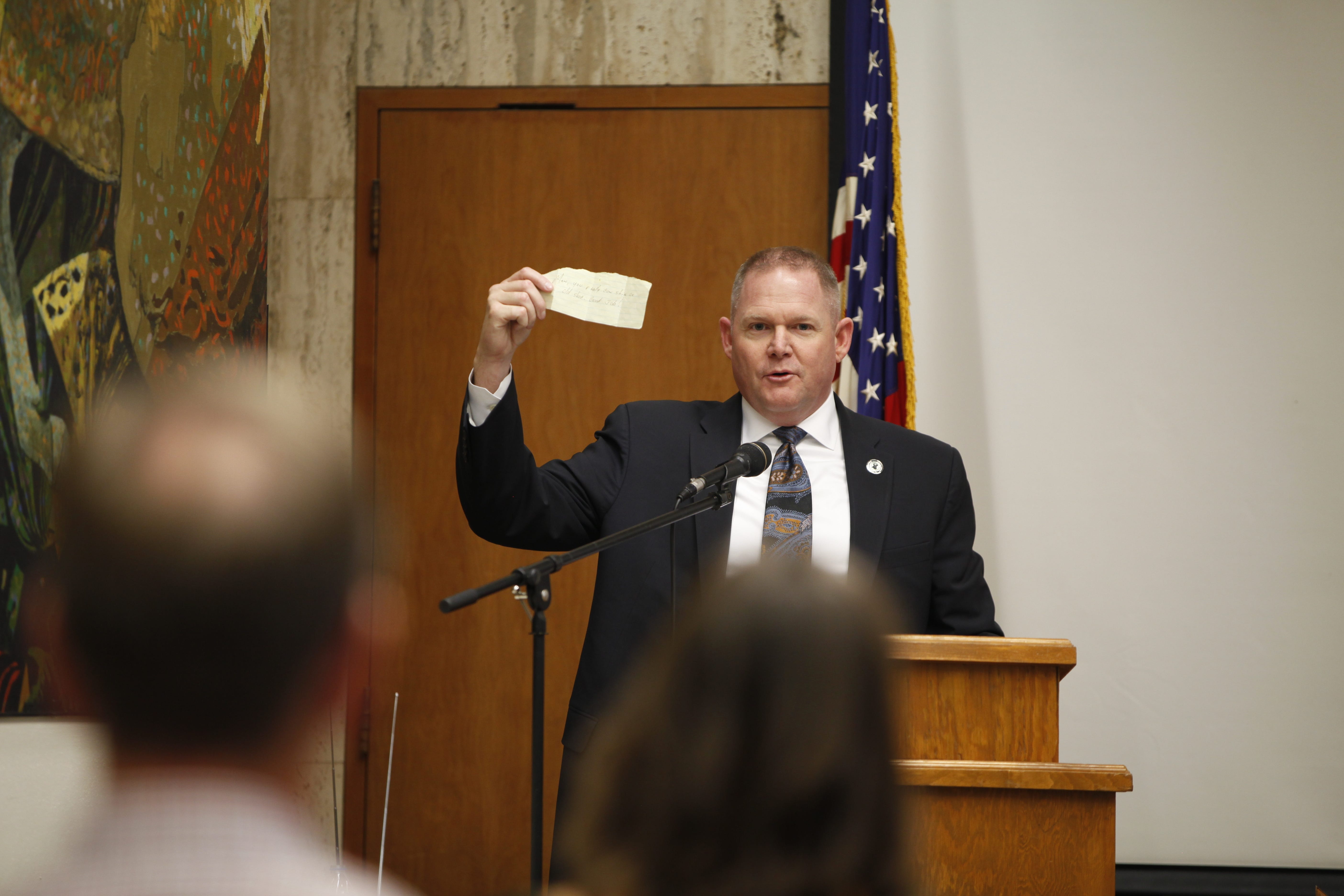 "I start every morning in this office praying for this function," he said. "My prayer's not 'Let'southward get convictions. My prayer's that we'll practise justice on every case and protect the people that are involved in this office. That's all it is. And so I don't know how you can do this task without it."